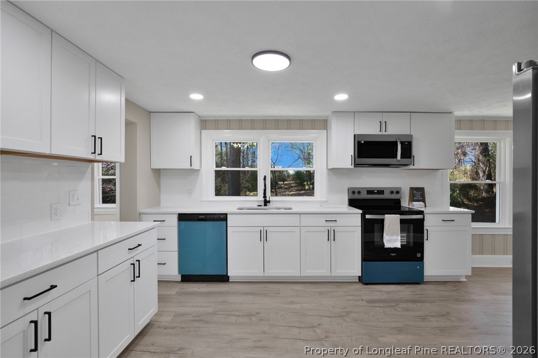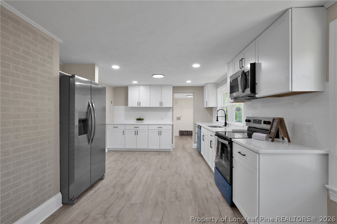 Welcome to this fully updated 3-bedroom, 2-bath home sitting on .88 acres in Four Oaks! This home features a bright, open layout with a beautifully renovated kitchen including quartz countertops, new cabinetry, stainless steel appliances, and a stunning brick accent wall that adds character and charm. Spacious living area is perfect for entertaining, with modern updates throughout the entire home. Both bathrooms have been fully updated with a clean, modern design.